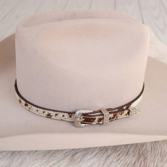 Cowhide Hat Band with Silver Buckle - Branson