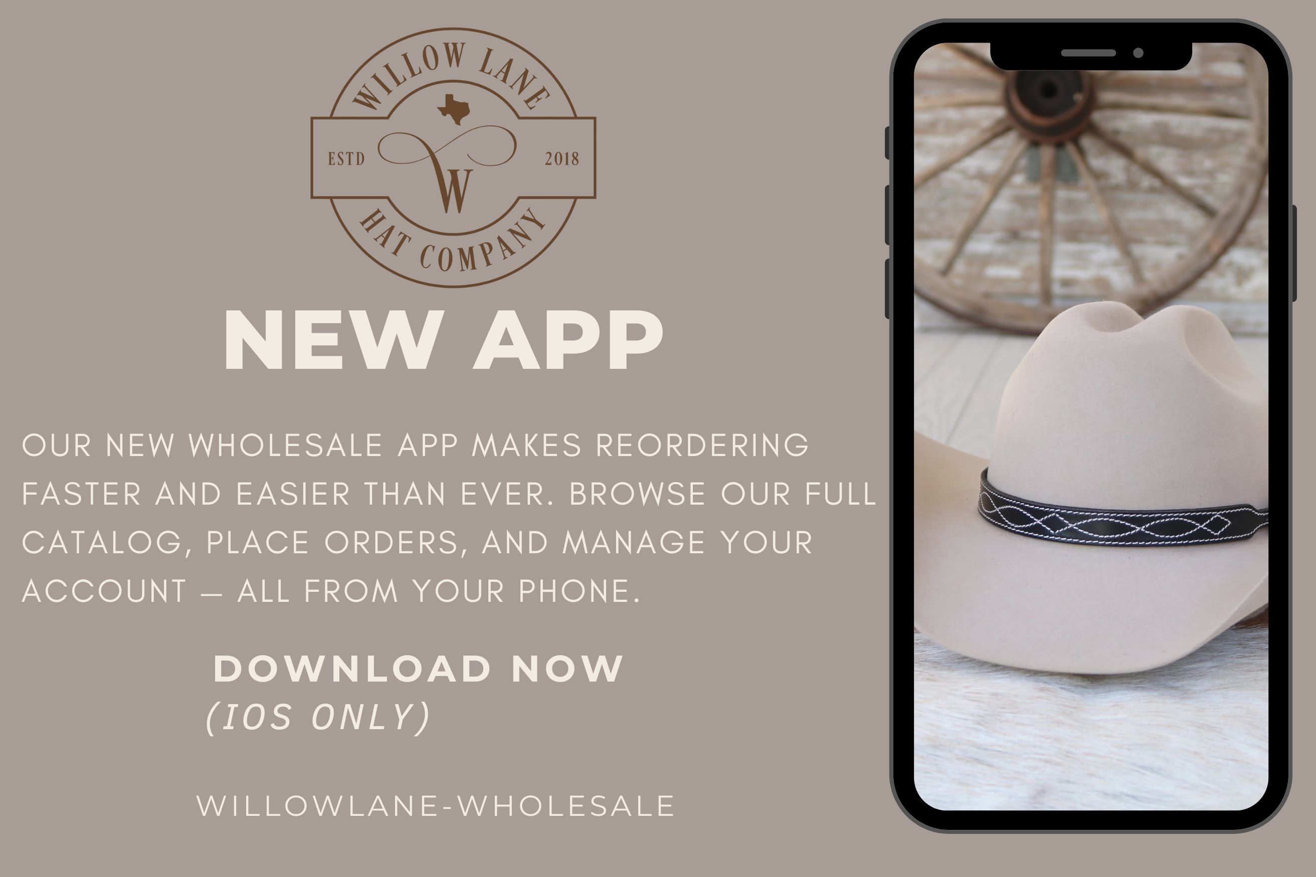 Welcome to Willow Lane’s wholesale portal. We offer a wide variety of western-inspired hat accessories for hat bars and boutiques—featuring feather hat bands, horsehair, rhinestones, leather, conchos, and more. Designed for retailers looking to source premium wholesale hat bar accessories.