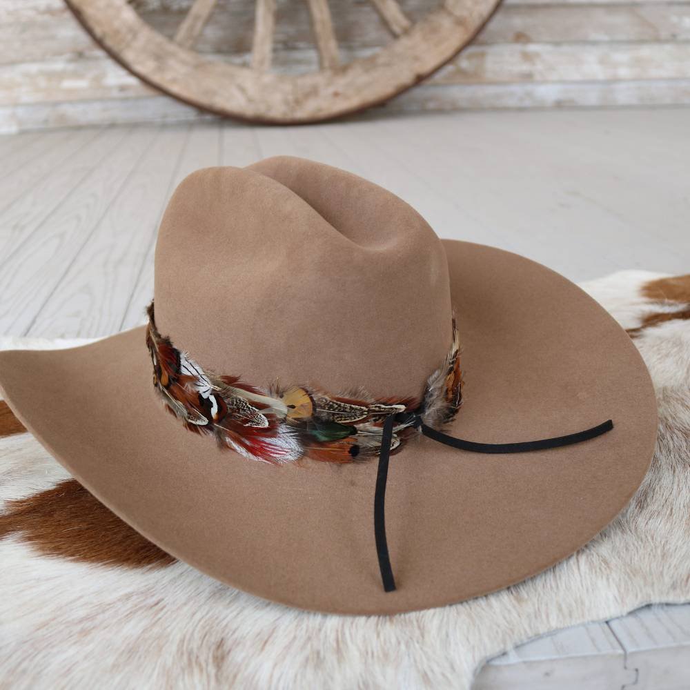 - One size fits most. Adjustable with leather ties. Hat not included.